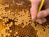 Mittlerweile ist es für die Bienen draußen viel zu kalt. Sie können sich alleine nicht mehr warm halten und auch nicht mehr fliegen. Die Bienen kuscheln sich eng zu einem Haufen, der Wintertraube, zusammen, um sich gegenseitig warm zu halten. Das machen sie allein mit ihren Muskeln. Und weil das anstrengend ist, wechseln sie sich dabei ab. Am 21. Dezember ist Wintersonnenwende, und für die Bienen beginnt jetzt das neue Jahr, denn ab jetzt werden die Tage wieder länger. Sie denken schon an wärmere Tageund die Königin fängt wieder an, Eier zu legen. |